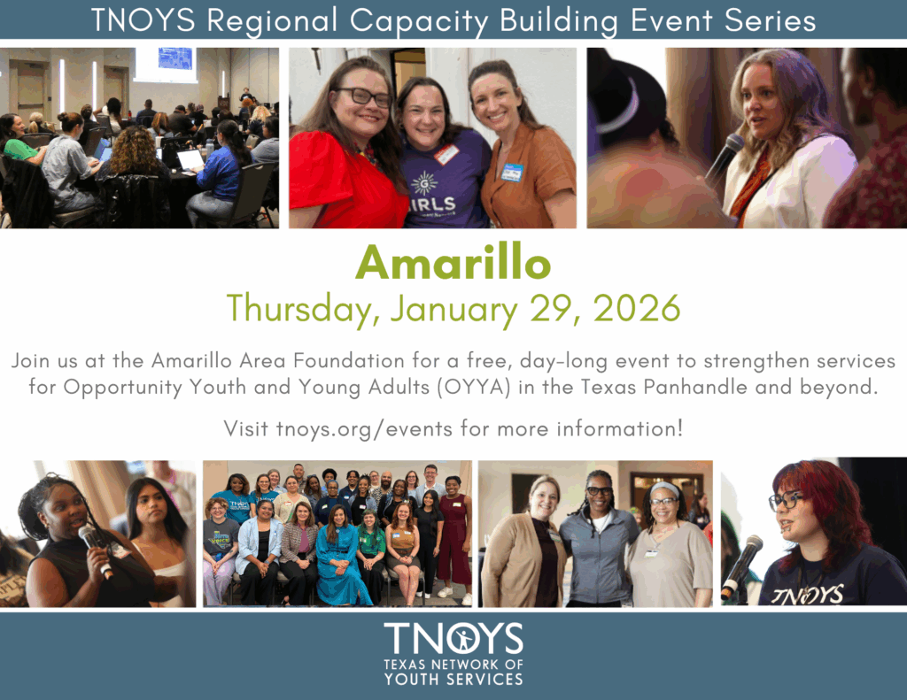 Join TNOYS in Amarillo on Thursday, January 29 for a free, day-long event that aims to strengthen services for Opportunity Youth and Young Adults (OYYA) in Amarillo and surrounding communities.